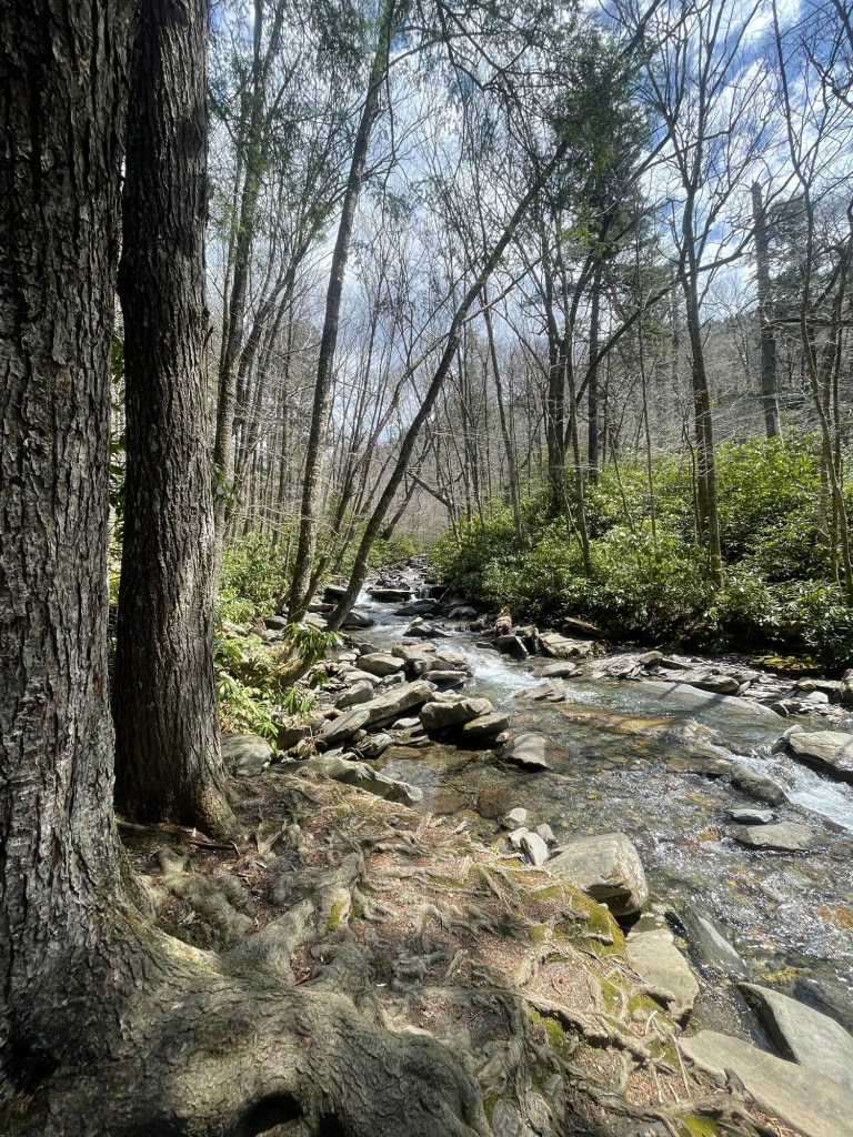 The car ride from UTK’s campus was roughly an hour 30 mins. I tried doing some homework and instantly regretted it when we got to a windy roads; my head began to hurt. We soon arrived at the Smoky Mountain welcome center to purchase a day parking pass. The parking pass is relatively new to the national park and I support it because it used to be completely free to enter/park and the park is now generating more revenue! Anyways we proceeded to our hiking destination using the parkway and soon arrived to Alum Trailhead. It was quite busy so we had to park half a mile down the road and walk to the trailhead.